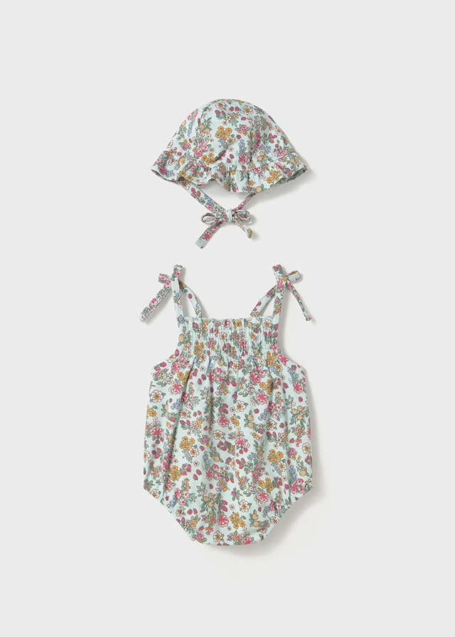 Barboteuse fleurie Jade + chapeau