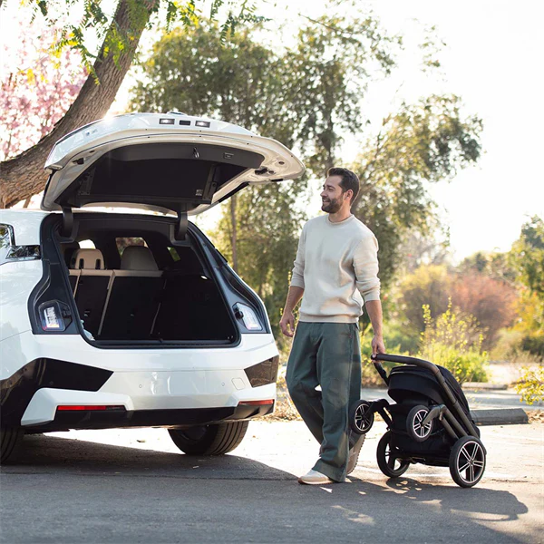 • Verrou automatique rapide et pratique, et fonction « chariot » qui permet à la poussette de rouler une fois pliée.